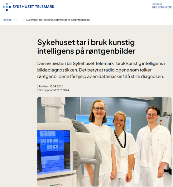 Slike verktøy er allerede i bruk i mange norske virksomheter. Sykehus bruker KI til å analysere røntgenbilder, industribedrifter bruker KI til å sikre stabil produksjon og kommuner bruke KI til å planlegge bemanning.