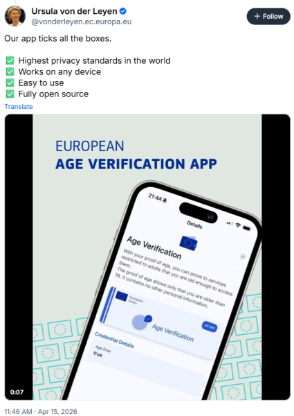Med lanseringen sier EU at de samtidig vil begynne å håndheve europeiske aldersreguleringer strengere.